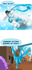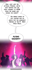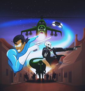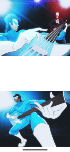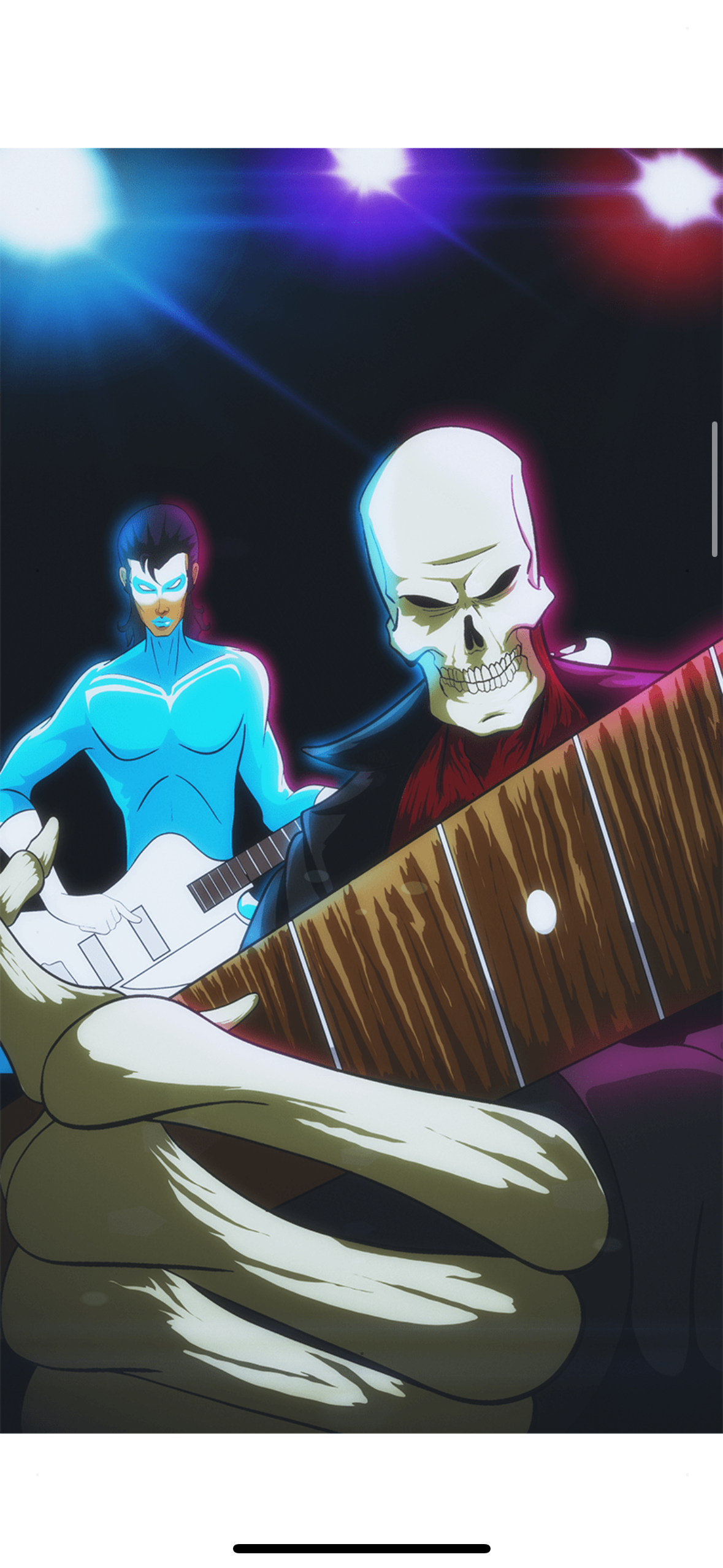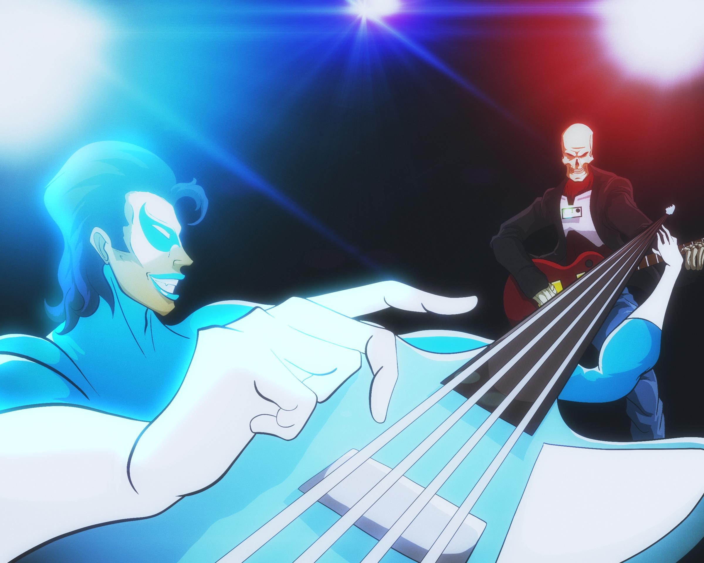 “Icy Glamour is a genetically engineered Glam rocker from the future. Rick Motherload is a cybernetic skeleton from the past. Together they must travel across time to keep the spirit of rock and roll alive! Oh, and save the world too.”